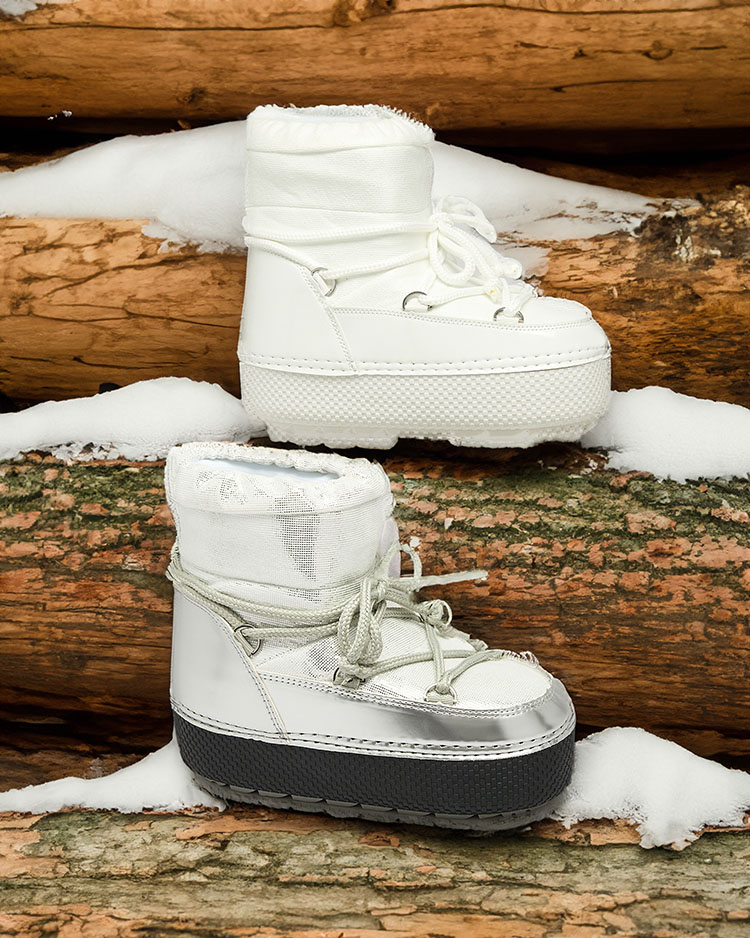 • Női hócsizma, melynek felsőrésze öko lakkbőr és szövet anyag kombinációjából készült. Belül szövetbéléssel bélelt, felsliccelhető és fűzős cipő. Tökéletes választás télre!