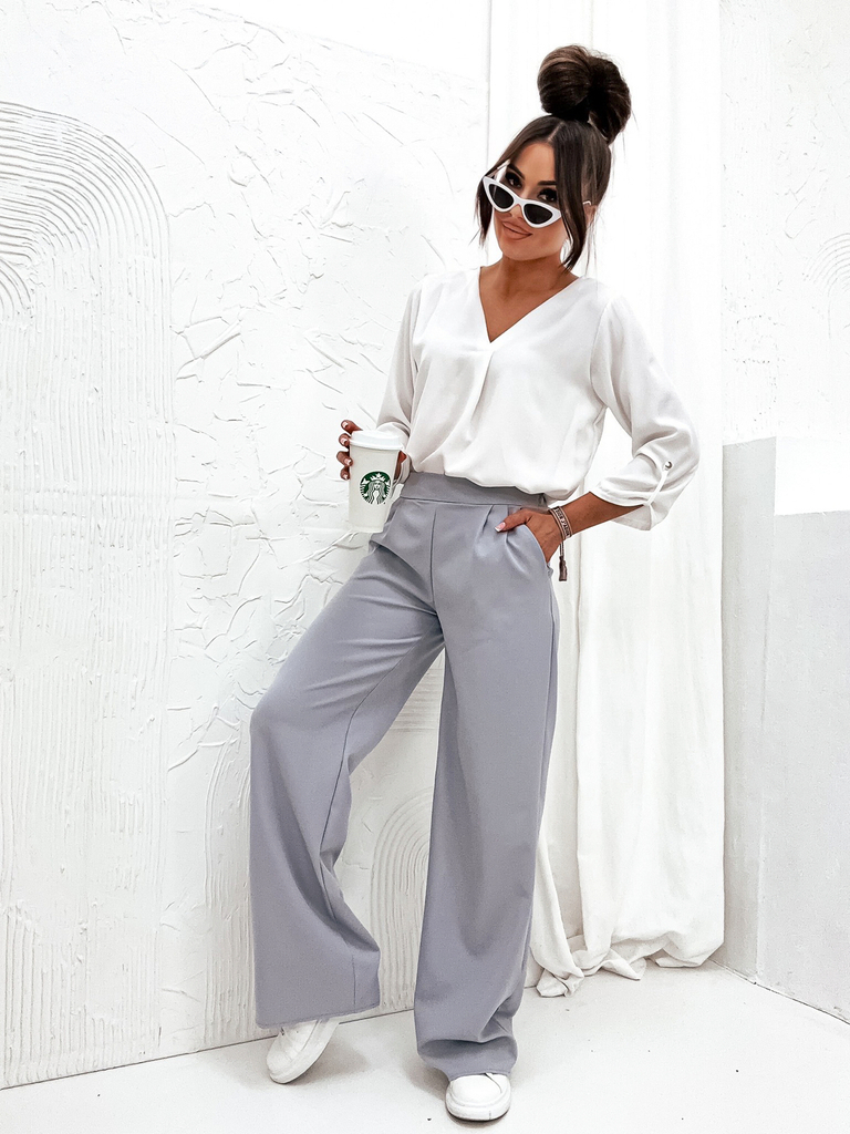 • Könnyű szövetből készült széles nadrág, a modell rugalmas derékkal és két zsebbel rendelkezik. Kényelmes és kényelmes! MEGJEGYZÉS: A mérési pontosság (+/-) 1 cm.