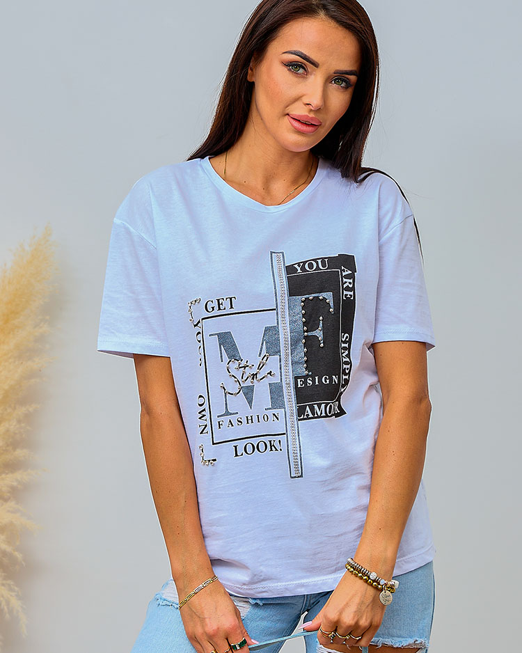 • Laza, rövid ujjú női nyomtatott póló. Pamut anyagból készült. Tökéletes alap számos hétköznapi megjelenéshez! MEGJEGYZÉS: A mérési pontosság (+/-) 1 cm. Méretek laposan mérve.