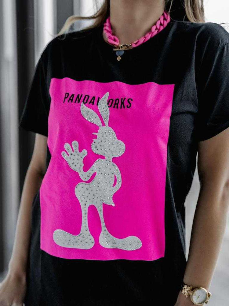 • Laza, rövid ujjú női nyomtatott póló. Pamut anyagból készült. Tökéletes alap számos hétköznapi megjelenéshez! MEGJEGYZÉS: A mérési pontosság (+/-) 1 cm. A méretek laposan mérve.