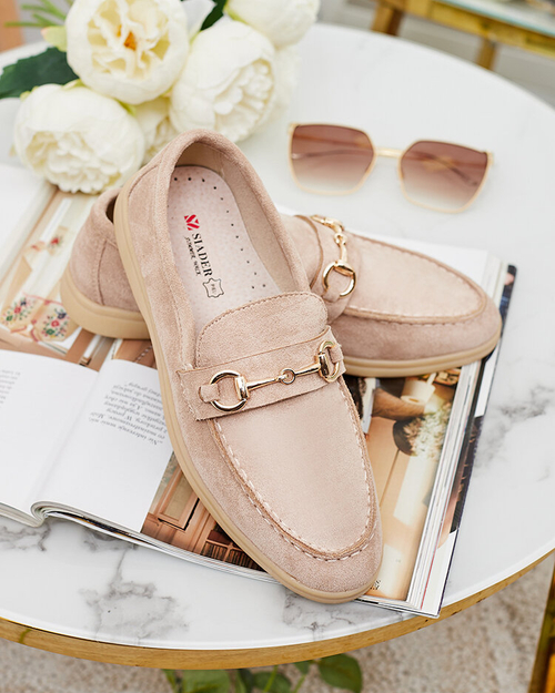 - Laza női mokaszin lapos talppal. A modell ökológiai bőrből készült. Belül a talpbetét természetes bőrből készült. Tökéletes alap minden napra!