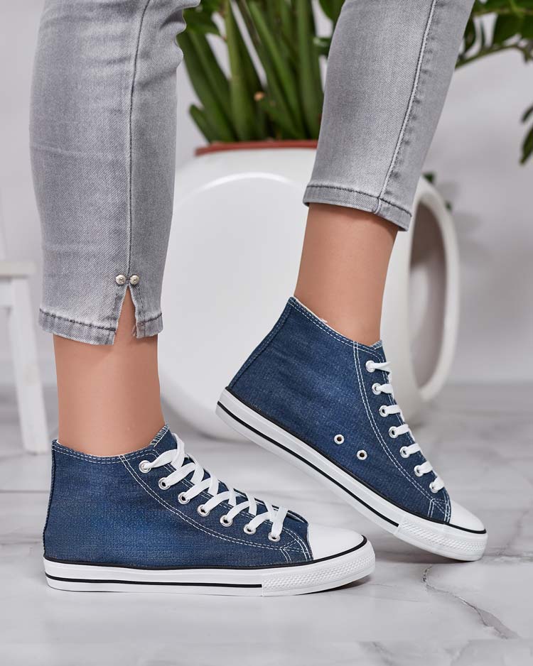 • Mega stílusos női magas tornacipő szövet anyagból. Lapos talpú modell. A felsőrész fűzős. Remekül illik majd a mindennapi stílushoz!
