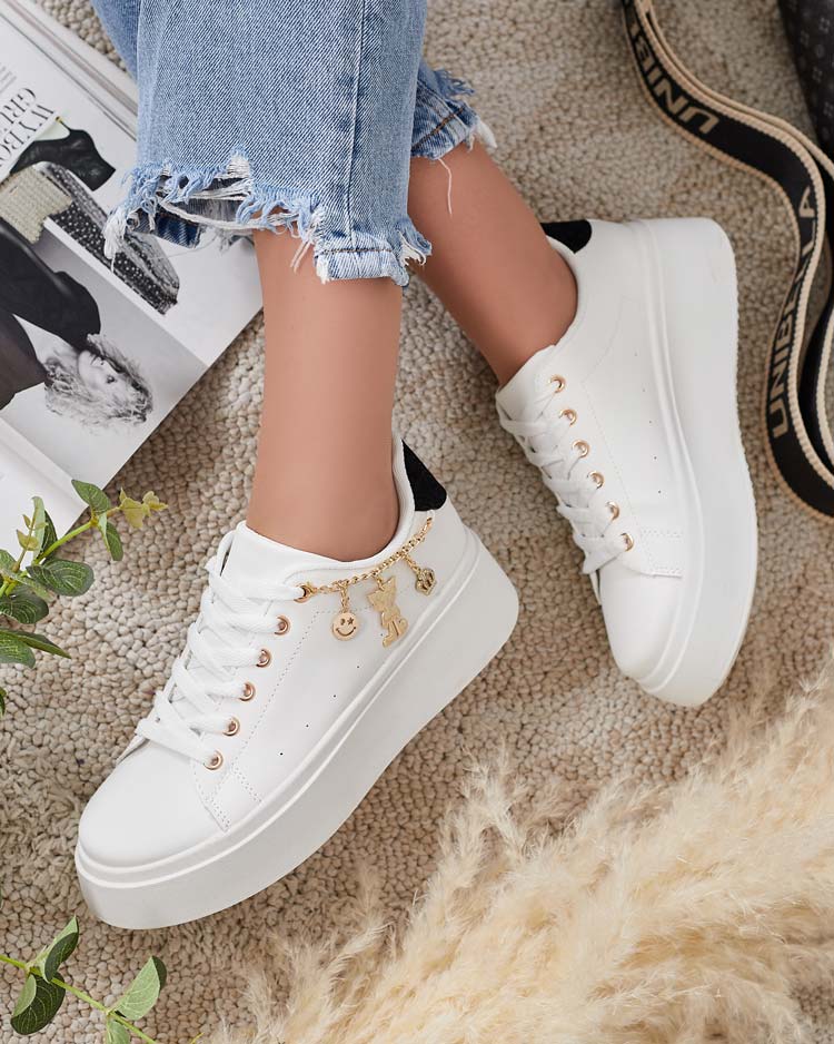 - Női platformos Eco bőr tornacipő nőknek - a stílus és a kényelem tökéletes kombinációja. Fűzős modell, szövet talpbetéttel rendelkezik. A felsőrész medállal díszített. Ideális az aktív emberek számára!