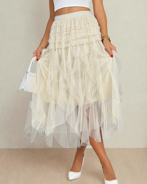 • Időtlen női dupla rétegű midi szoknya. A modell rugalmas derékpánttal rendelkezik, amely tökéletesen kiemeli a derekat. Ez a szoknya nagyszerű hangsúlyt ad a mindennapi megjelenésednek!