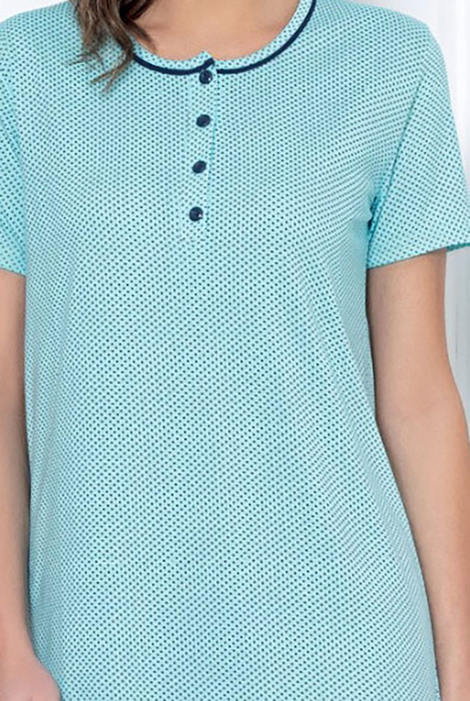 • Nagyon kényelmes, rövid ujjú ing. 100% pamutból készült és dekoratív nyomattal van ellátva. A modell kerek nyakkivágással rendelkezik, díszgombokkal. MEGJEGYZÉS: A mérési pontosság (+/-) 1 cm.