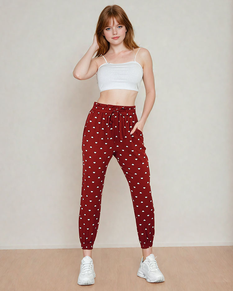 • Könnyű anyagból készült anyagnadrág szívekkel, a modellnek rugalmas derékpántja és a lábszár alján húzózsinórja van. Az idei szezon slágere! MEGJEGYZÉS: A mérési pontosság (+/-) 1 cm.