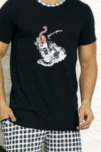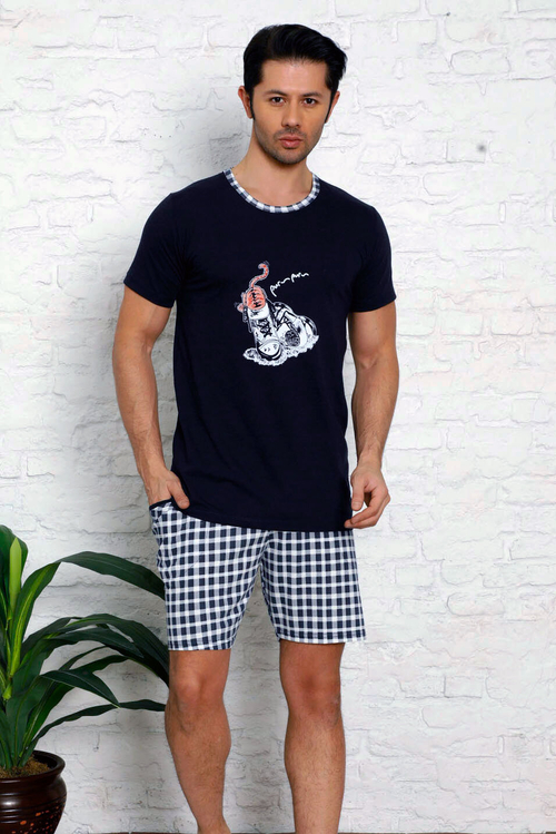 - Kényelmes, pamut anyagból készült, rövid ujjú és rövid szárú, 2 részes férfi pizsama. Mintás mintával díszített modell. Tökéletes otthoni estékre! MEGJEGYZÉS: A mérési pontosság (+/-) 1 cm.