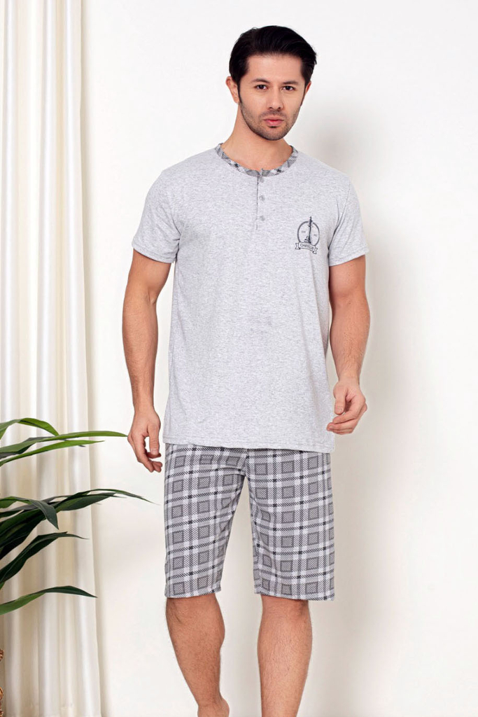 - Kényelmes, pamut anyagból készült, rövid ujjú és rövid szárú, 2 részes férfi pizsama. Mintás mintával díszített modell. Tökéletes otthoni estékre! MEGJEGYZÉS: A mérési pontosság (+/-) 1 cm.