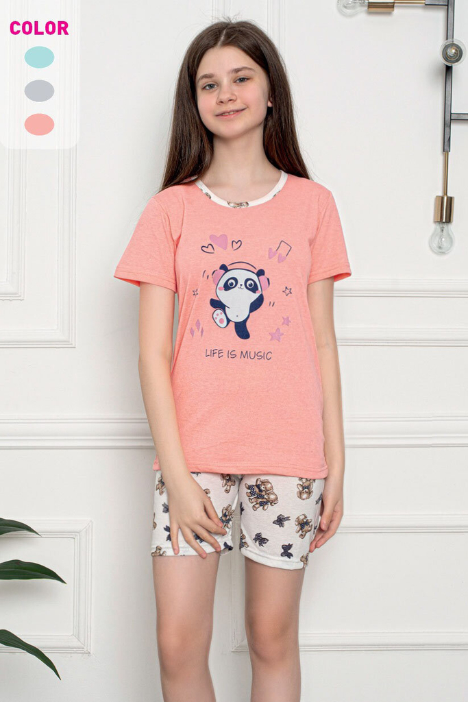 - Kétrészes gyerekpizsama, 100% puha pamutból. A szett dekoratív mintával ellátott. Ez a modell tökéletes választás a melegebb éjszakákra! MEGJEGYZÉS: A mérési pontosság (+/-) 1 cm.