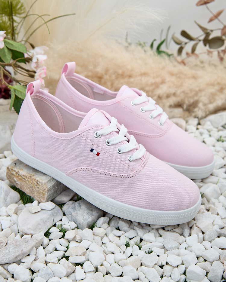 • Könnyű női tornacipő stílusú sportcipő lapos talppal. Fűzős felsőrész szövetből készült. Belül szövet anyagból készült talpbetét. Nagyszerű a nyári sétákhoz!