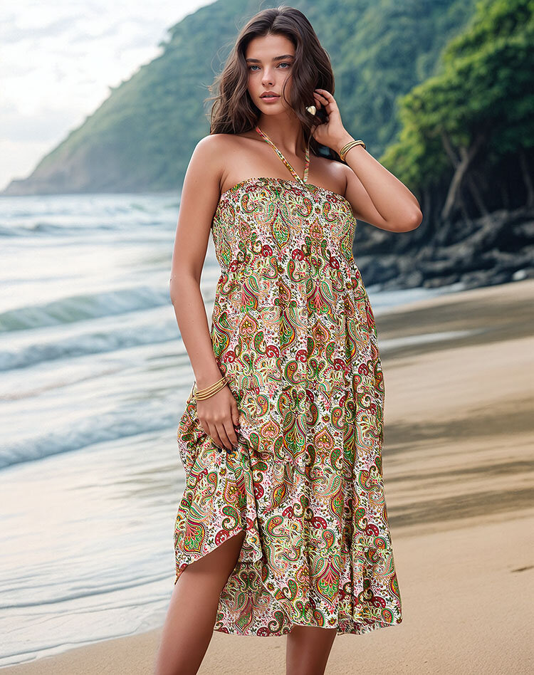 • Egyedi, légies, mini hosszúságú ruha. Pánt nélküli modell, a mellrészen átmenő szegéllyel és a nyaknál megkötővel. Tökéletes választás a nyári napokra! MEGJEGYZÉS: A mérési pontosság (+/-) 1 cm.