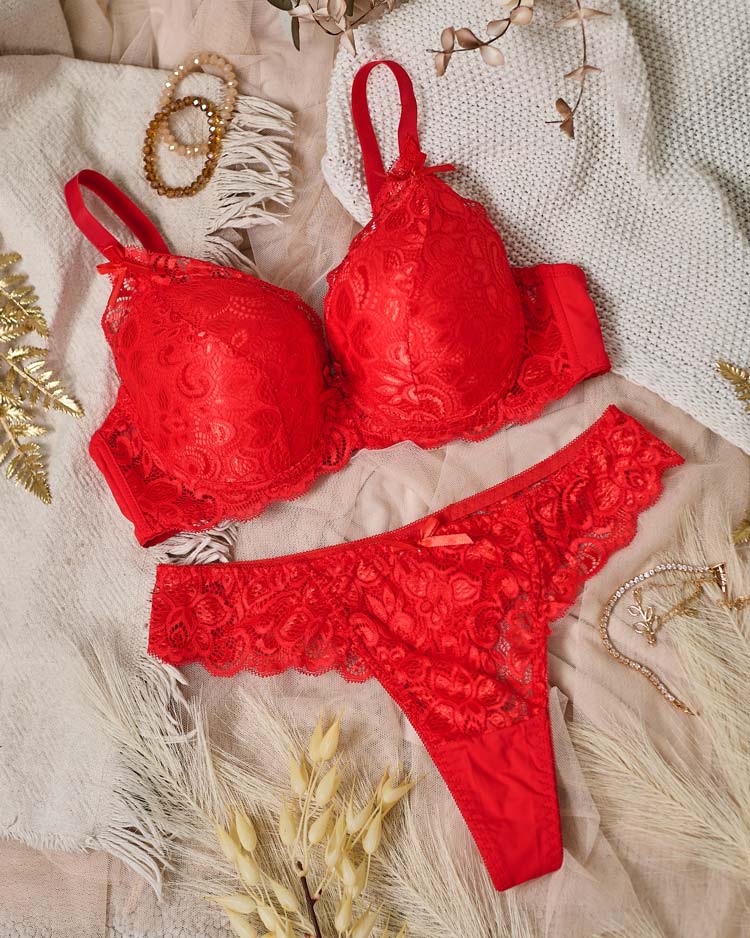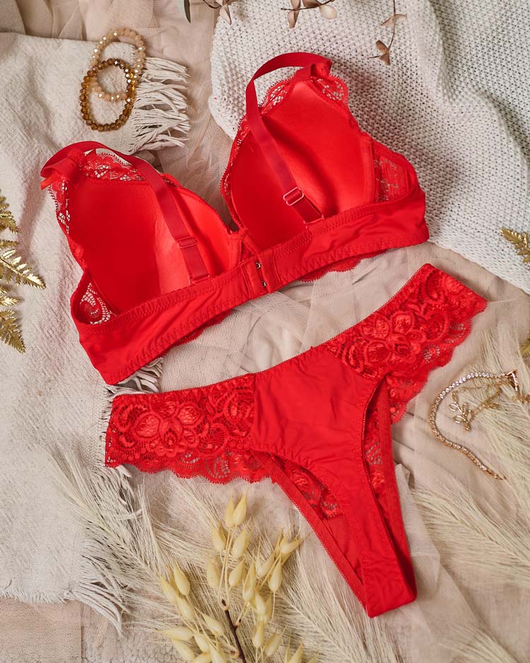 - Gyönyörű női fehérnemű szett puha anyagból. Merevített melltartó állítható pántokkal. Tanga típusú bugyi, elasztikus derékpánttal. Finom csipkével díszített modell. Mérési pontosság (+/-) 1 cm.