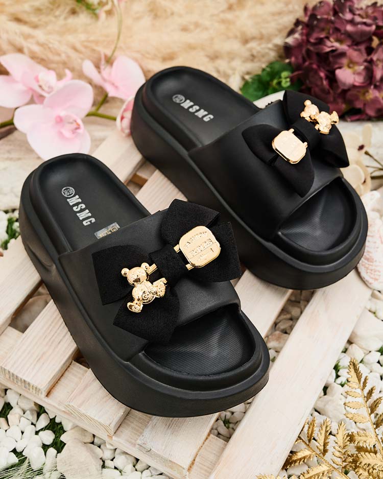 - Nagyszerű női platformos gumi flip-flop. A felsőrészen díszes masnival díszítettek. Tökéletes választás a nyaralásokhoz!