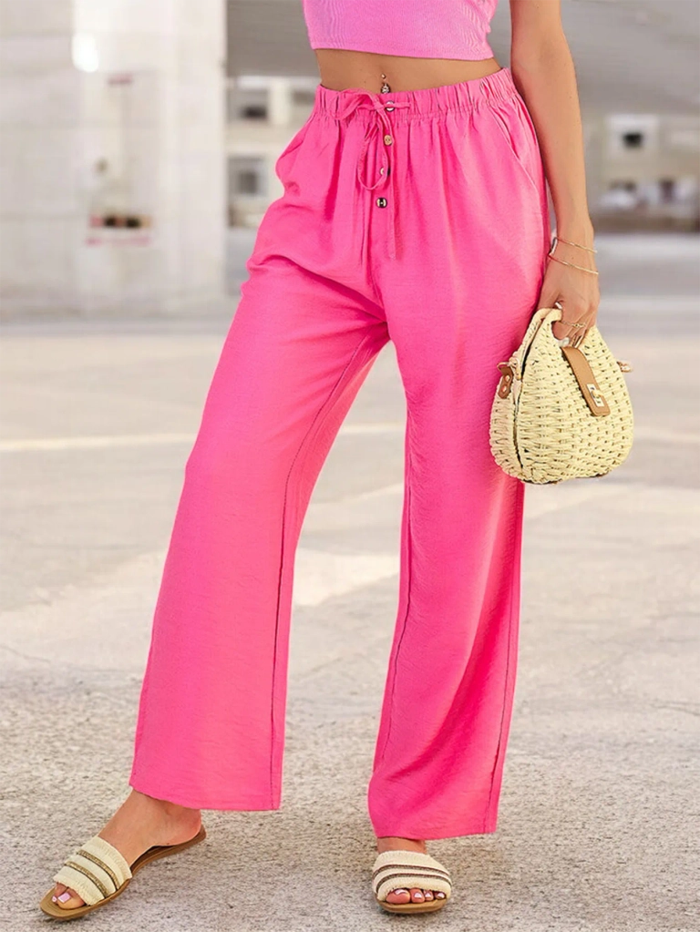 • Fenomenális széles nadrág könnyű anyagból, a modell derékrészénél elasztikus pánttal és nadrággal rendelkezik. Az idei szezon slágere! MEGJEGYZÉS: A mérési pontosság (+/-) 1 cm.