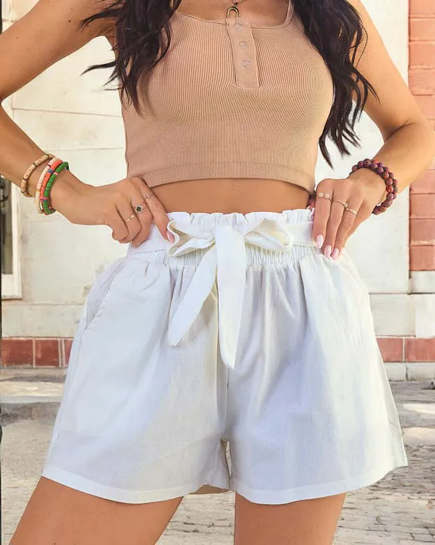 • Könnyű női szövet rövidnadrág. Magas derekú modell, két zsebbel és elasztikus és nadrággal a derekán. Ideális választás nyárra! MEGJEGYZÉS: A mérési pontosság (+/-) 1 cm.