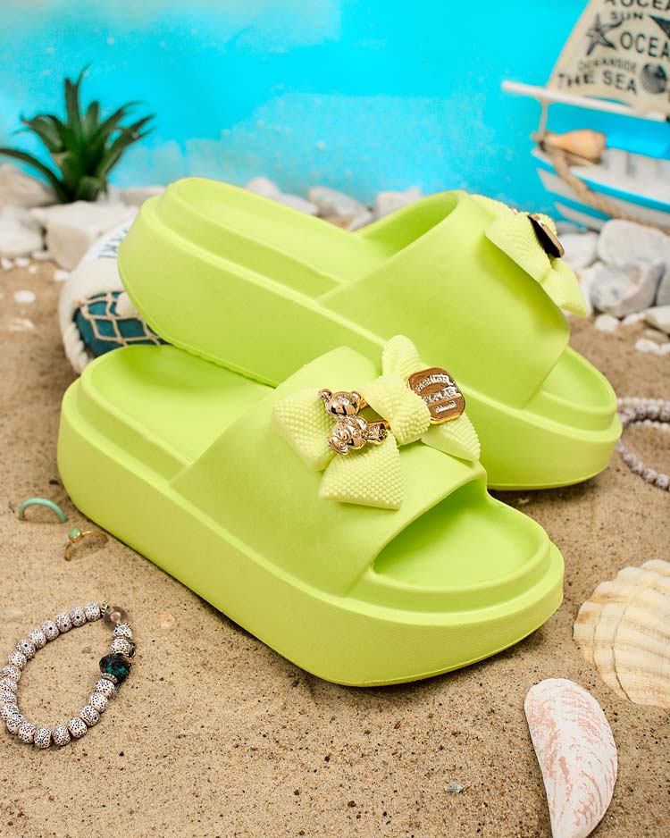 - Nagyszerű női platformos gumi flip-flop. Felül díszes masnival díszítettek. Tökéletes választás a nyaralásokhoz!