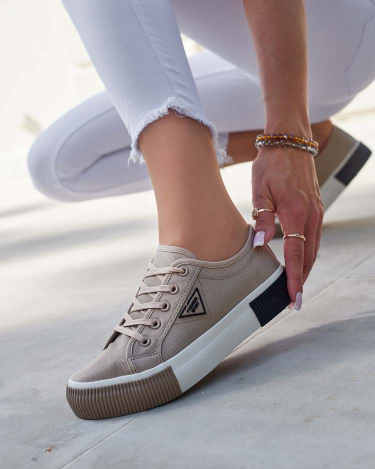 • Laza női sportcipő tornacipő stílusban, lapos talppal. Fűzős felsőrész szövetből készült. Belül szövet anyagból készült talpbetét. Nagyszerű a nyári sétákhoz!