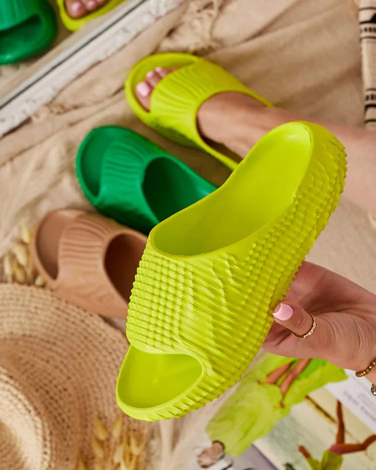 - Nagyszerű női gumi flip-flop lapos talppal. Dekoratív dombornyomott gumi felsőrésszel rendelkeznek. Tökéletes választás a nyaralásokhoz!