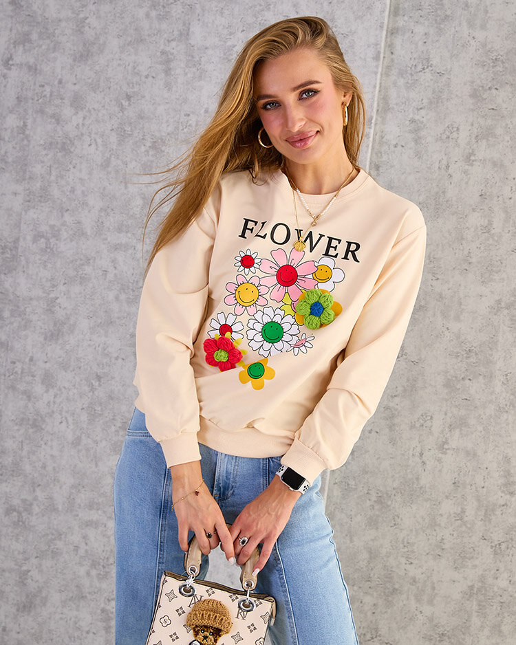 • Vékonyabb mintás díszített pulóverrel varázsolj hangulatot az öltözékeidbe. A fej fölé húzható, kerek nyakkivágással és hosszú ujjakkal. Tökéletes minden napra, amikor lazán, mégis stílusosan szeretnéd érezni magad!