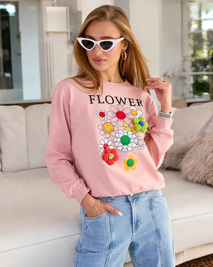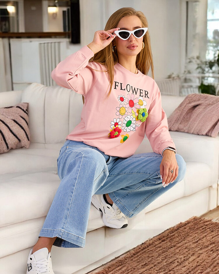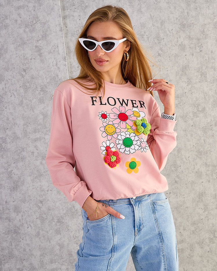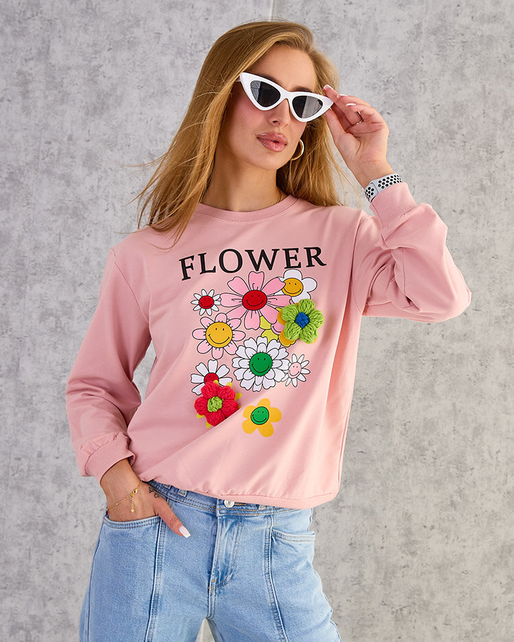 Royalfashion Női pamut vékony nyomtatott pulóver