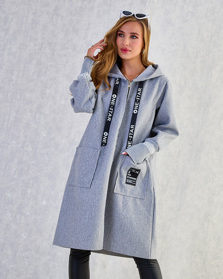 - Eredeti női kabát kapucnis kabátra emlékeztet. A modell hosszú ujjú és varrott zsebekkel rendelkezik. A mandzsetták gumis pántokkal vannak ellátva jobb illeszkedés és kényelem érdekében. Ideális javaslat az őszre! FIGYELEM: Méretpontosság (+/-) 1 cm.