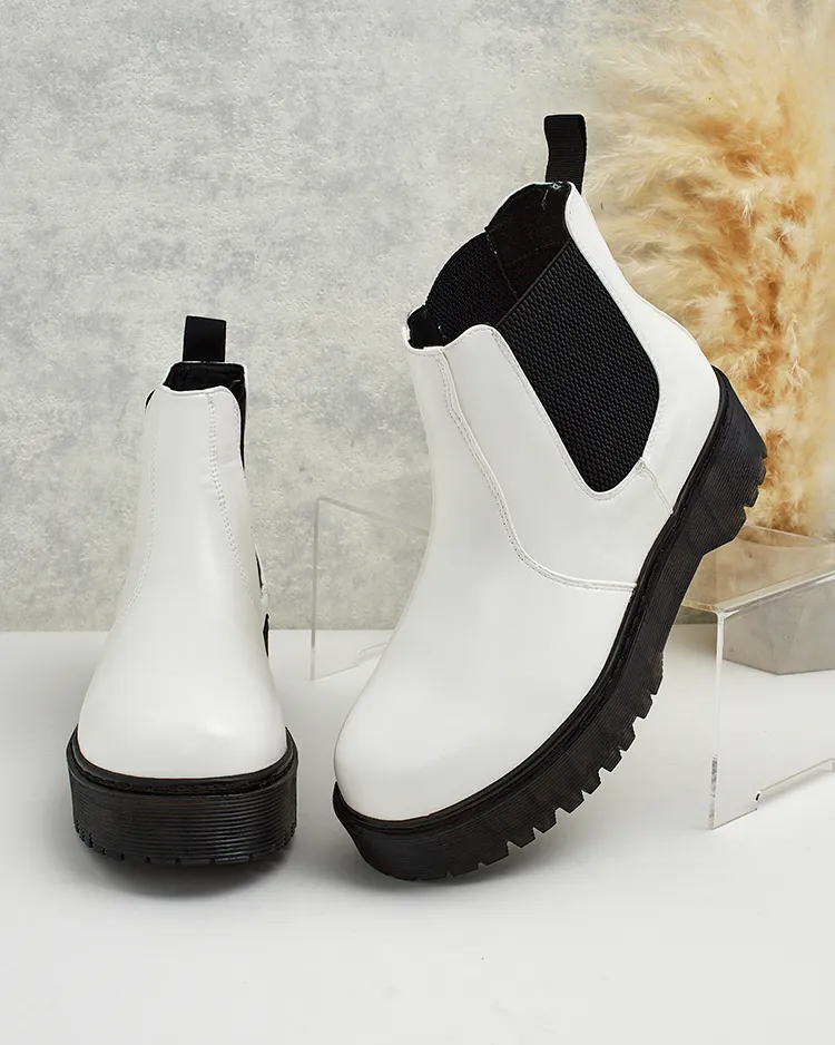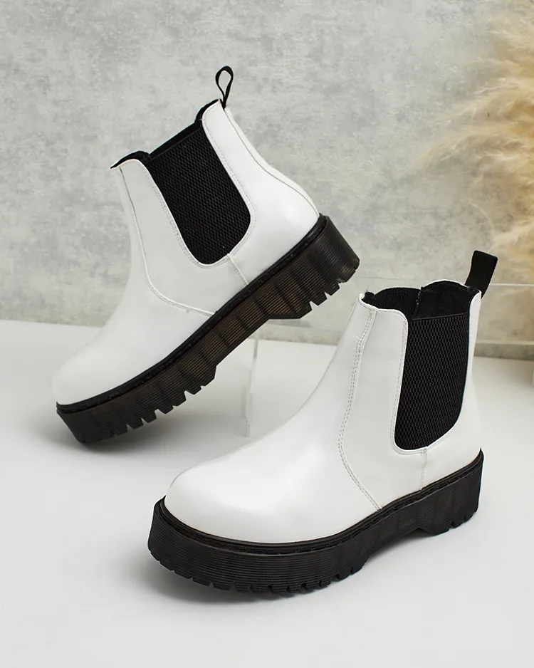 • Csizma vastagabb talppal - stílus és kényelem egyben. Oldalán rugalmas betétekkel rendelkezik. Teljesen öko bőrből és szövet talpbetéttel a belsejében. Ez a modell magabiztosságot fog adni!