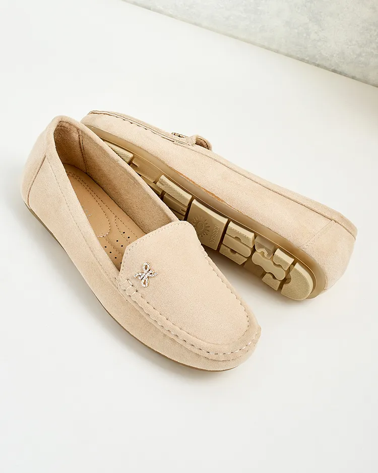 • Laza női mokaszin lapos talppal. Klasszikus modell velúr ökológiai bőrből és ökológiai bőr talpbetéttel. Tökéletes alap minden napra!