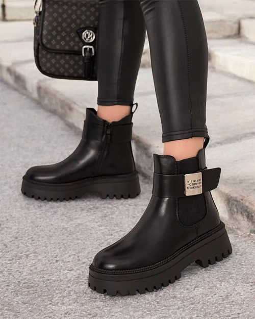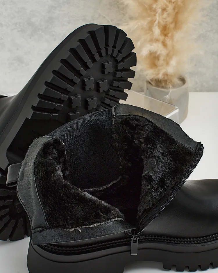 • Csizma vastagabb talppal - stílus és kényelem egyben. Oldalán rugalmas betét és cipzár a könnyű viseletért. Teljesen öko bőrből és szövet talpbetétből készült. Ez a modell magabiztosságot fog adni!