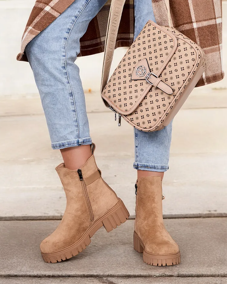 • Klasszikus női csizma vastagabb talppal. A felsőrész anyaga öko velúr bőr, belül puha szőrme. A modell cipzárral záródik, a felsőrészen finom díszítéssel rendelkezik. Tökéletes alap számos hétköznapi megjelenéshez!