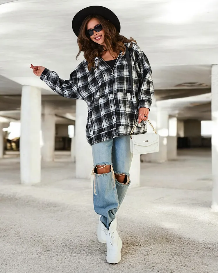 • Stílusos női ing típusú kabát kapucnival. Az over size szabású kabát hosszú ujjakkal, cipzáras záródással és 2 zsebbel rendelkezik. Nagyszerű választás őszre!