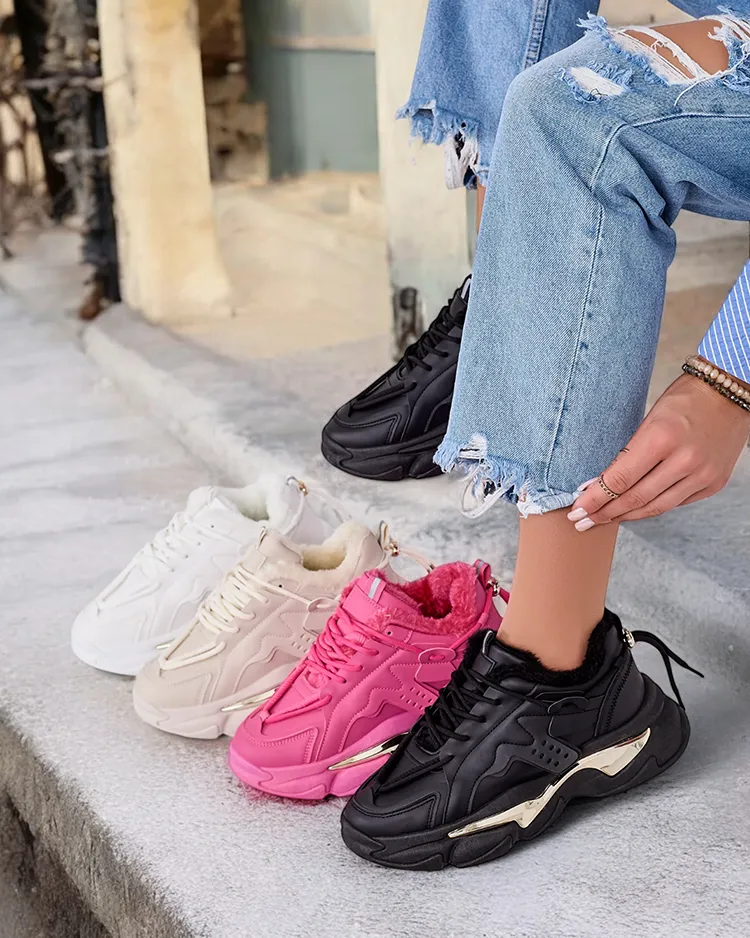 • Női sportos tornacipő vastagabb talppal. Fűzős felsőrész, ökológiai bőrből készült. Belseje teljesen szigetelt szőrmével. Ideális sportos öltözékhez!