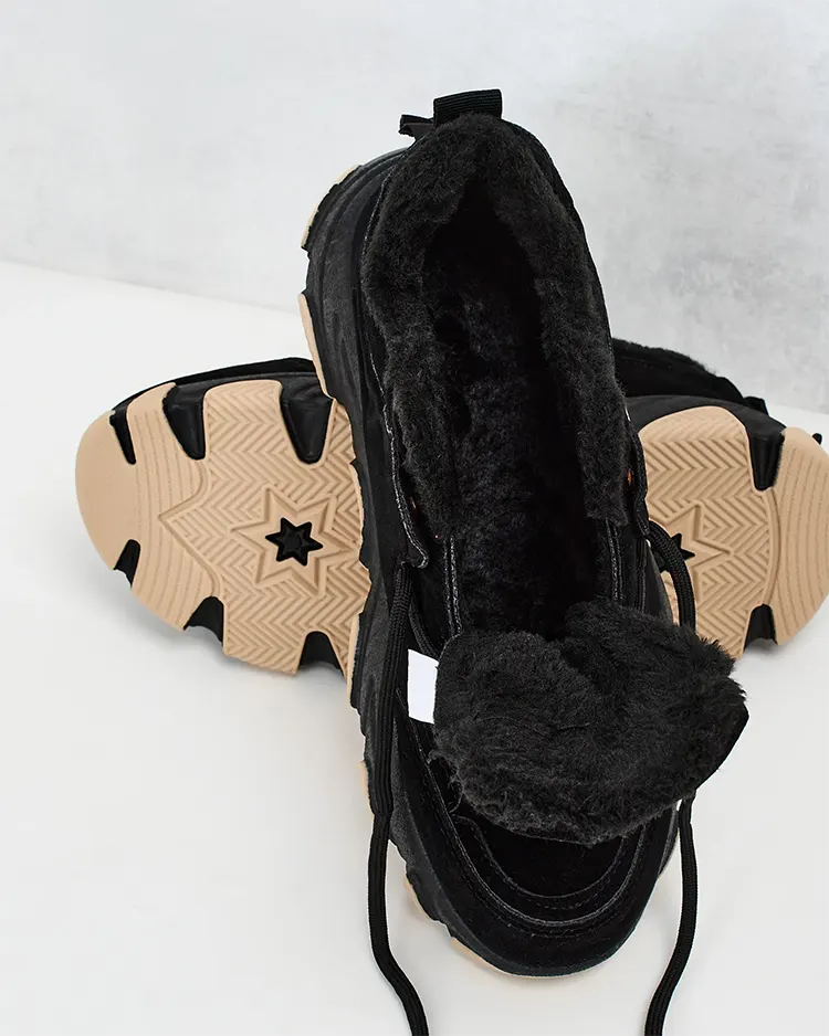• Női szigetelt tornacipő sportcipő vastagabb talppal. Fűzős felsőrész ökológiai nubukból készült. Puha szőrme belseje. Szuper kiegészítője a téli alkalmi öltözékeidnek!