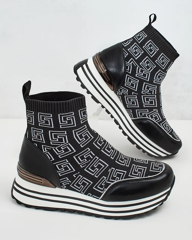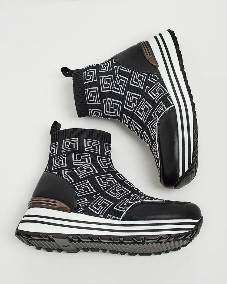 - Női tornacipő vastagabb talppal - a stílus és a kényelem tökéletes kombinációja. Slip-on lábbeli, szövetből készült. A modell dekoratív mintával rendelkezik. Jó választás a mindennapokra!