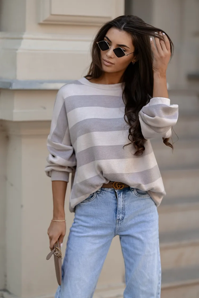 Royalfashion Vékony női csíkos pulóver