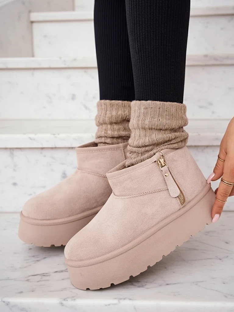 - Nagyszerű női téli platformos hócsizma. A felsőrész organikus velúr bőrből készült, a közepe szőrmével szigetelt. A modell díszes cipzárral rendelkezik. Ideális alap a télre!