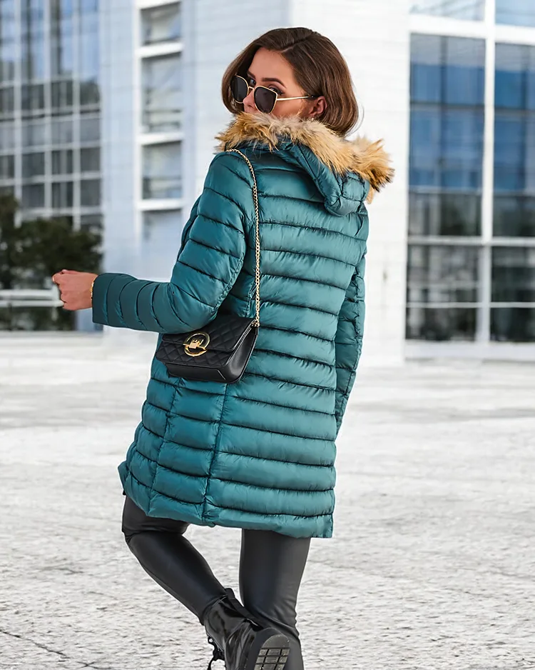 • Meleg steppelt női téli dzseki. A dzseki levehető kapucnival, nem levehető szőrrel és két zsebbel rendelkezik. Cipzárral záródik. Modell szintetikus tollal töltött. Tökéletes a téli időjárásra!