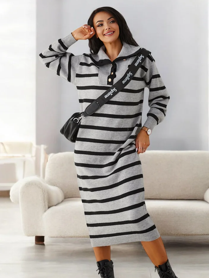 Royalfashion Női hosszú pulóveres ruha csíkos