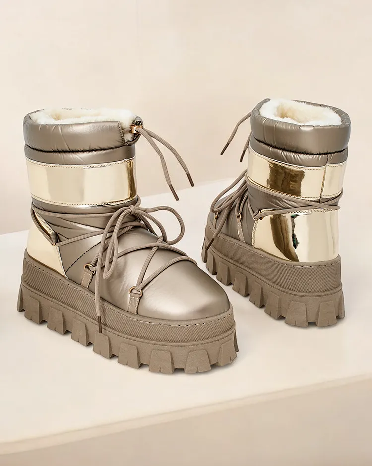- Női hótaposó, szárát viaszvászon és patent eko bőr kombinációjából készült anyagból. Belül kellemes műszőrme bélés található, betűrhető és cipzáras hótaposók. Tökéletes a télre!