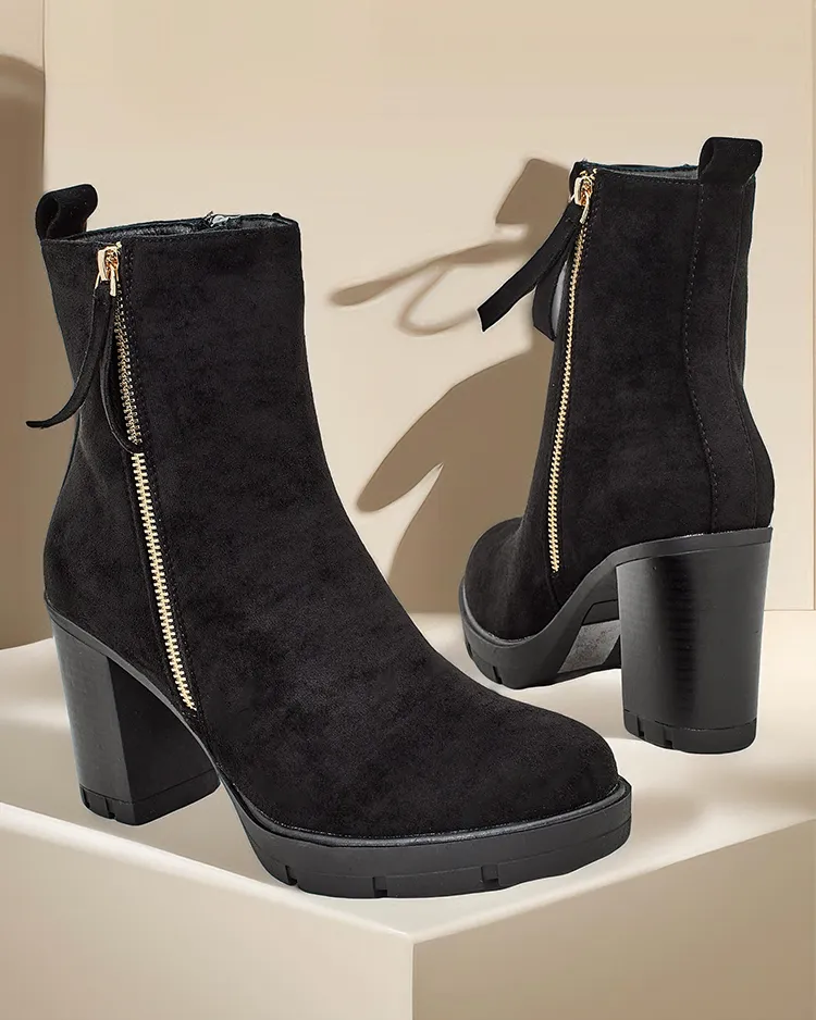 • Divatos női bokacsizma tökéletes megoldás a hűvösebb napokra. A felső rész cipzárral van rögzítve, belül bársony bélés található. Modell egy poszton, kerek orrú. Nagyszerű kiegészítő az alkalmi öltözékekhez!