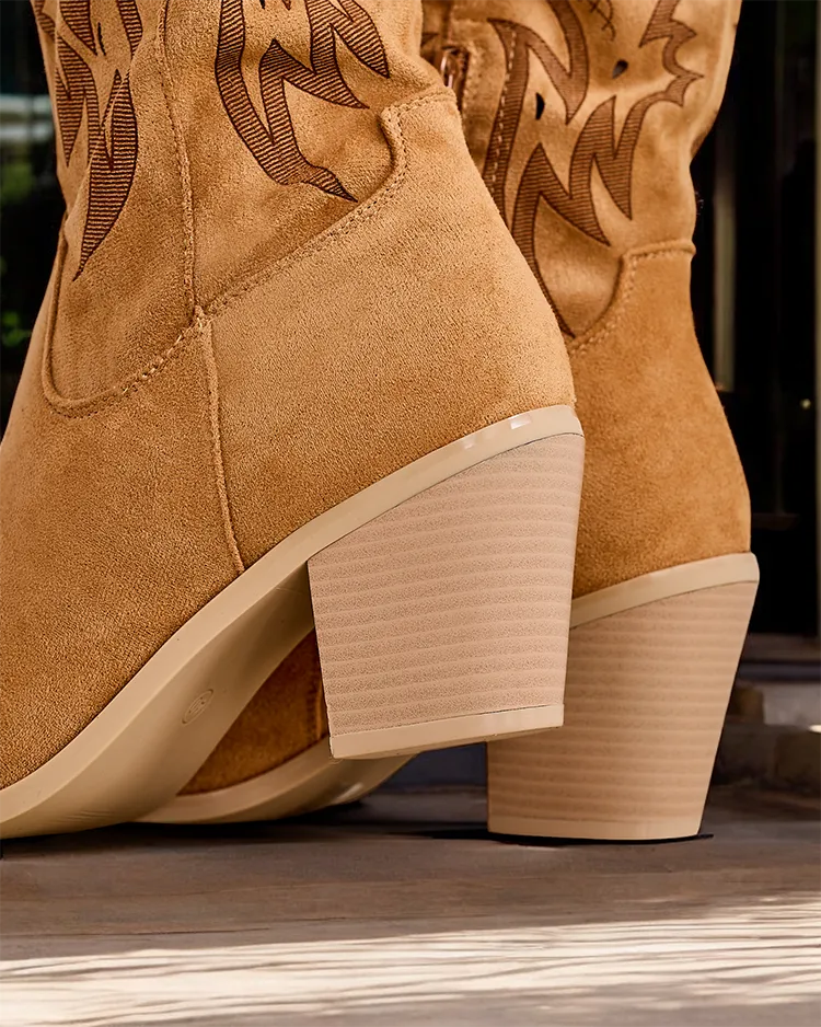- Csizmák cowgirl stílusban, nagy sarkú, műszarzsőrből készült. Eko bőr talpbetét, cipzár rögzítés, díszítve dombornyomással. Sok nőies stílizációhoz illenek!
