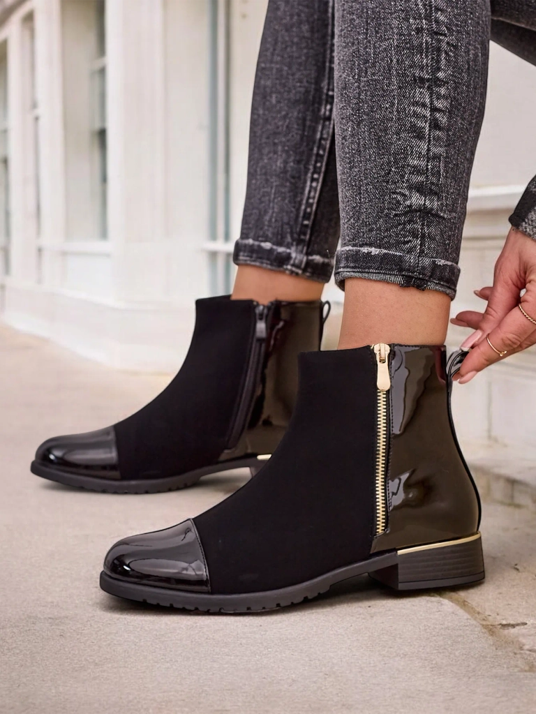 • Fantasztikus női lapos sarkú csizma, matt ökológiai bőrből készült cipő bőr betétekkel. A belső rész kényelmes bőrből készült. A modellt cipzárral lehet zárni. Tökéletes őszi szett kiegészítő!
