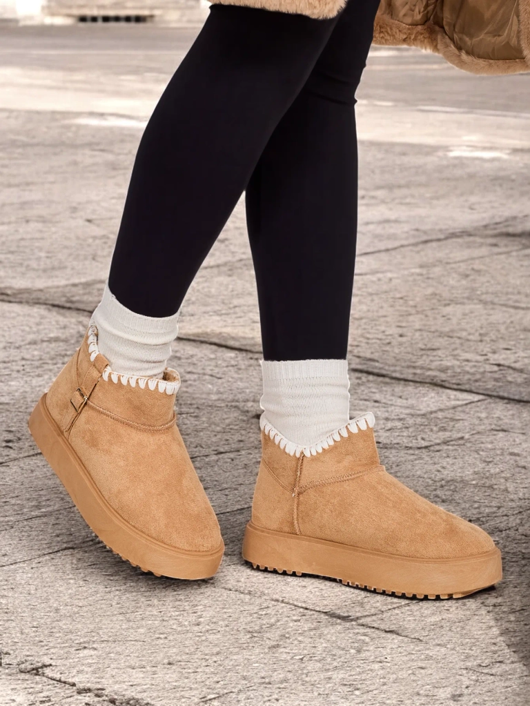 - Nagyszerű női téli platform hócsizma. A felső rész szarvasbőrszerű ökológiai bőrből készül, bélés boával van. Tökéletes a téli időszakra!