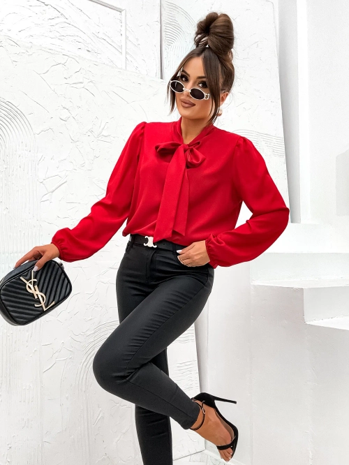 - Elegáns blúz finoman kötött masnival az nyakvonal hangsúlyozza a nőies finomságot. Puha anyag öleli körbe a siluettet, a masni pedig elegáns akcentust ad. Tökéletes esti programokhoz és különleges alkalmakhoz!