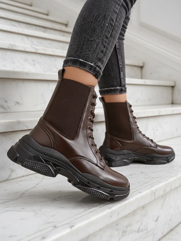 • A női munkás csizmák egyedi cipők, amelyek ötvözik a stílust és a kényelmet. Műbőrből készülnek, puha szőrrel töltve. Fűzős modell. A vastagabb talp kényelmet ad a cipőknek.