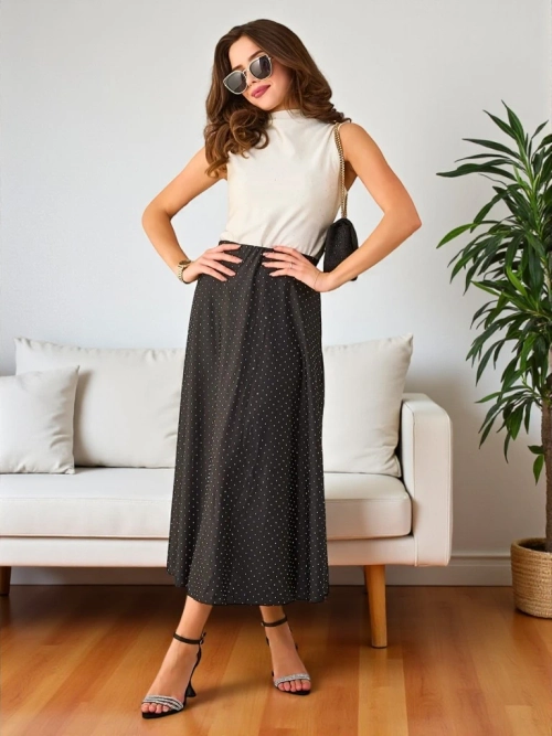 - Női midi szoknya puha anyagból készült. A modellt egészében flitterek díszítik. Ideális alap sok egyedi outfithez! MEGJEGYZÉS: A mérési pontosság (+/-) 1 cm.
