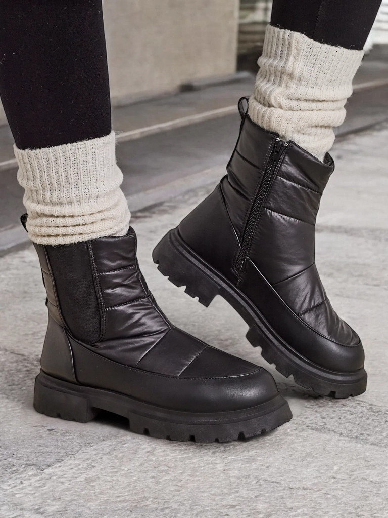- Női hó csizma, melynek szára anyag és öko bőr kombinációjából készült. Belül kellemes szőr, cipő cipzárral záródik. Tökéletes a télre!