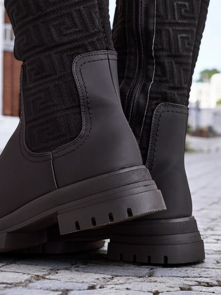 - Divatos női combcipő vastagabb talppal. A szár rugalmas anyagból készült, matt öko bőr betétekkel, béléses műszőrme talpbetéttel. Becsúsztatható modell. Ideális mindennapi őszi szettekhez!