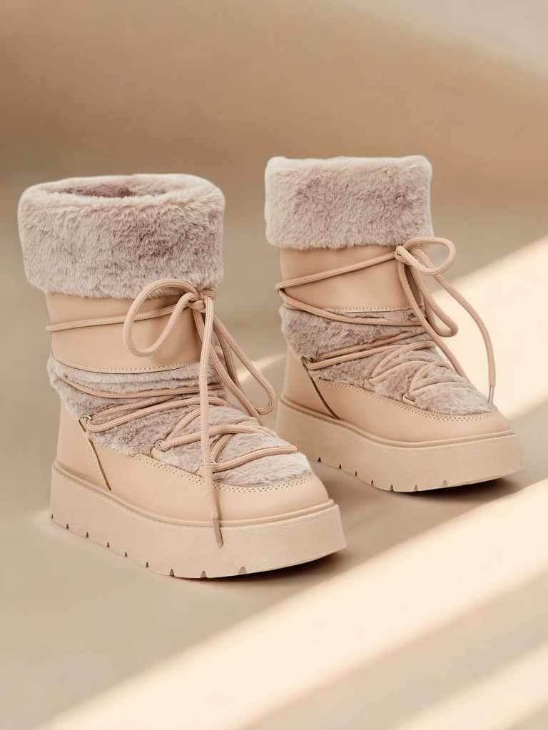 - Női hótaposók, melyek szárában öko bőr és kellemes anyag kombinációja található. Belül kellemes szőrös bélés található, a lábbeli rendelkezik fűzős szárral. Tökéletes a téli időszakra!