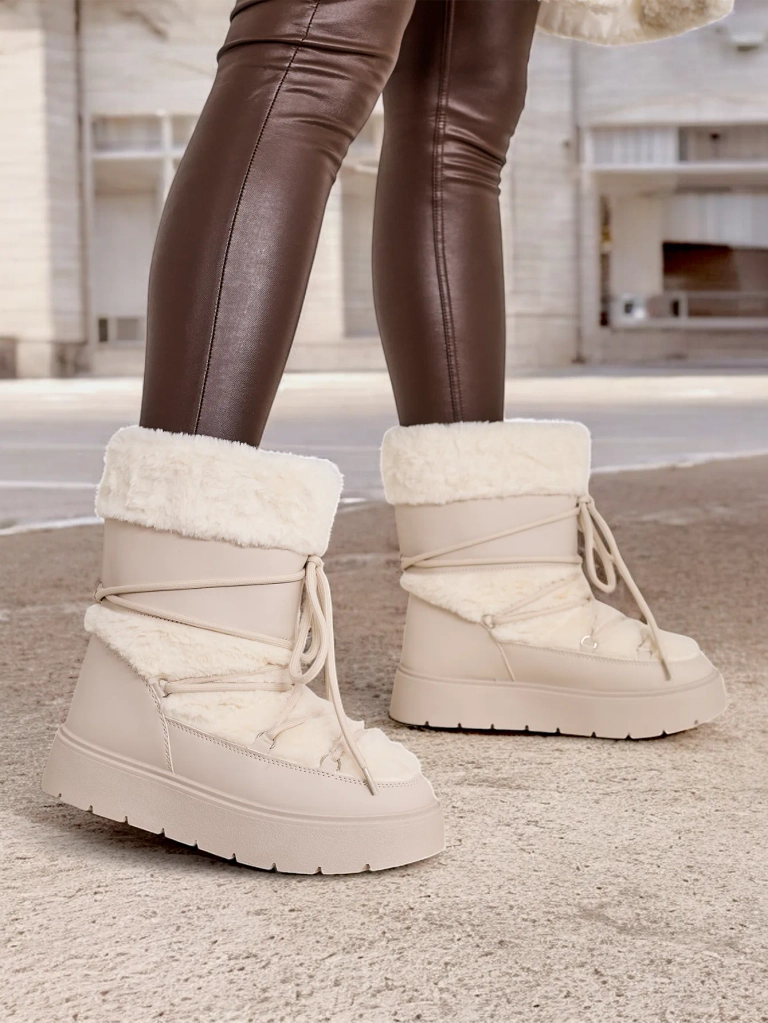- Női hótaposó, melynek szára egy kombinációja az ökobőrnek és kellemes anyagnak. Belül kellemes szőr található, és a csizmának van húzózár szára. Tökéletes a téli időszakra!