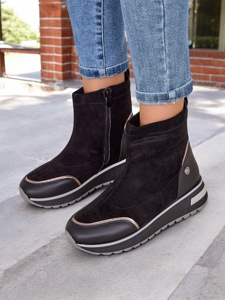 - Női platform bokacsizma, melyet bőrnadrágból készítettünk. A csizmákat cipzárral lehet rögzíteni, belül puha béléssel. Tökéletes őszi viselethez!